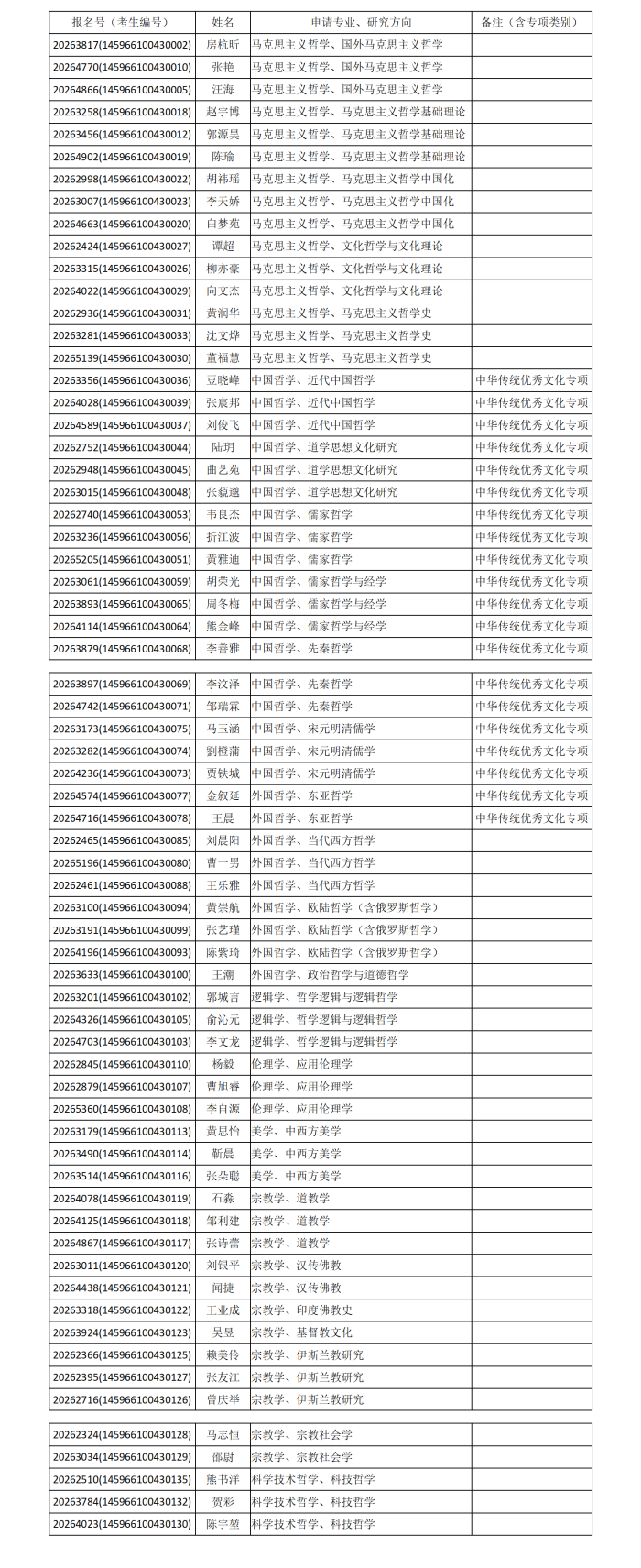 经过材料审查,并经哲学院研究生招生工作领导小组审核,哲学院2026年申请考核招考博士研究生入围综合考核名单已确定,现予以公示。